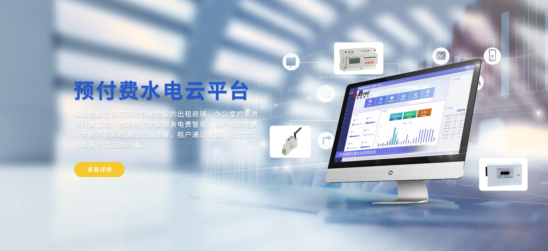 安科瑞提供的解決方案包括Acrel-EIoT能源物聯網云平臺、變電所運維云平臺、安全用電管理云平臺、環保用電監管云平臺智慧消防云平臺能源管理云平臺、工業企業能源管控平臺、遠程預付費云平臺餐飲油煙監管云平臺電動汽車/電瓶車充電樁收費管理云平臺、電力監控/無線測溫系統、電能質量治理系統、電氣火災監控系統、消防設備電源監控系統、防火門監控系統、應急照明和疏散指示系統、智能照明控制系統、醫用隔離電源絕緣監測系統等,幫助用戶實現能源智能化、可視化、精細化管理,提高用能效率和用能安全,為企業節能降耗和實現能源數字化建設提供數據服務。